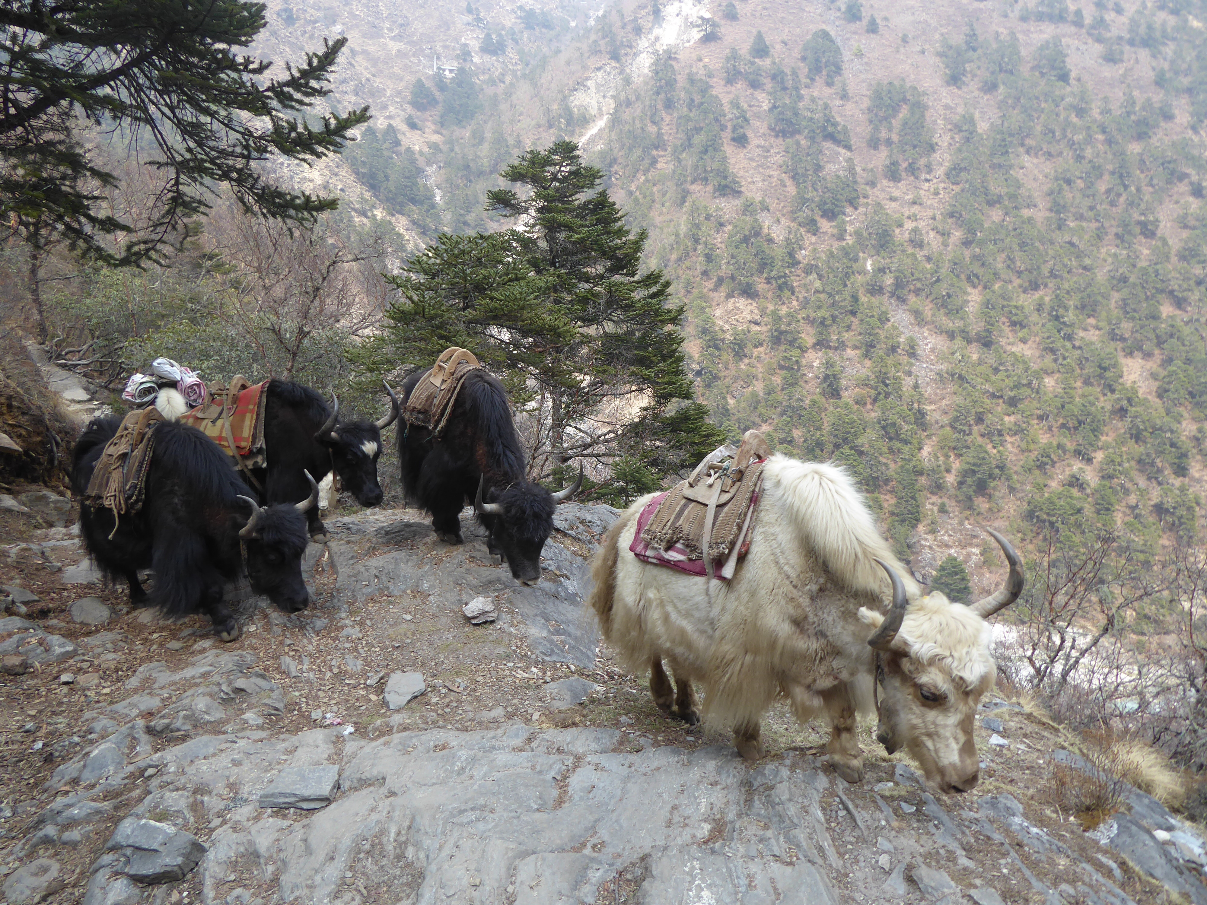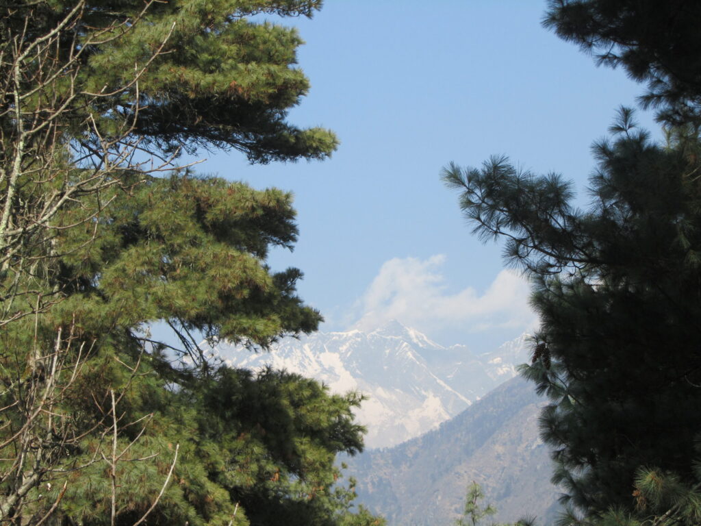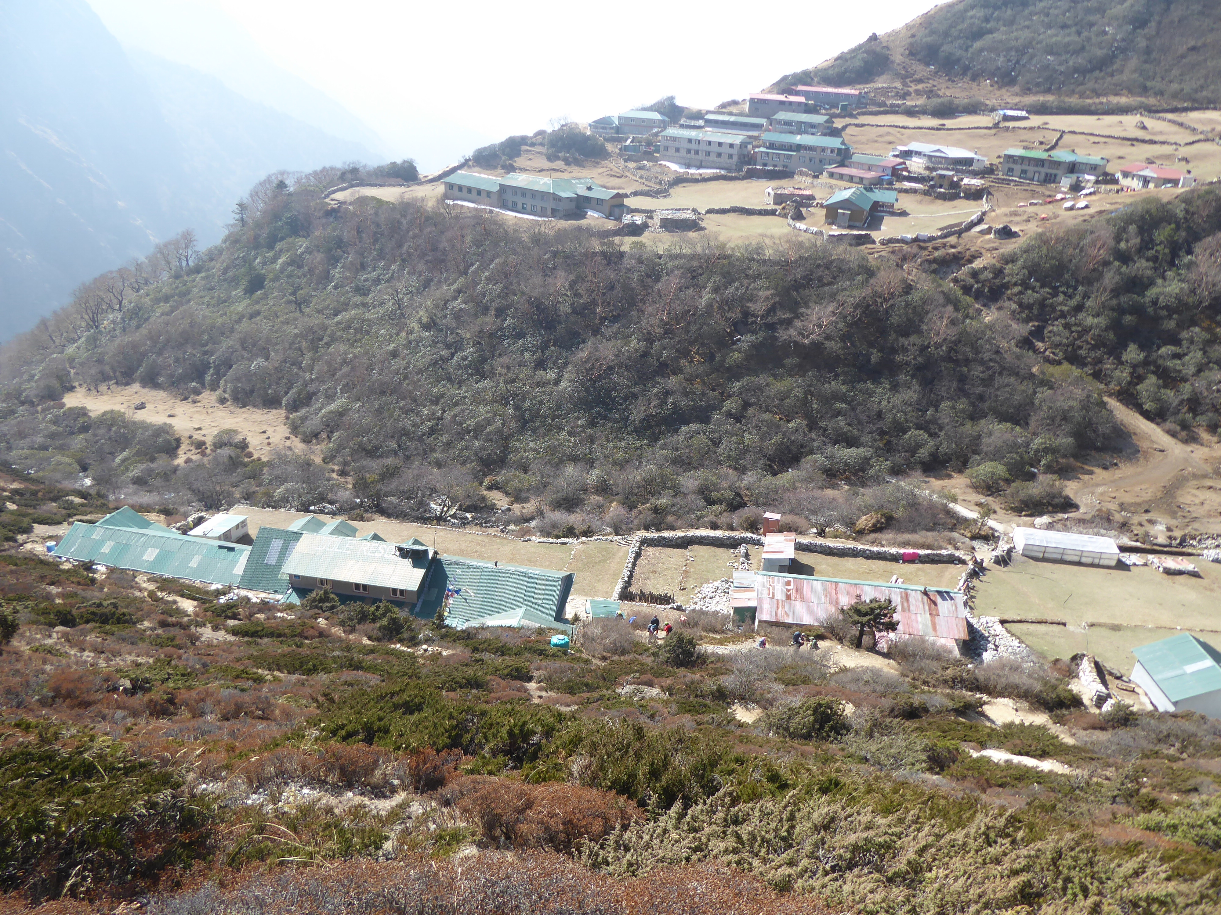 The trail descends quite considerably today, but there are some uphills to be tackled also! As we approach Namche the forests and greenery return.