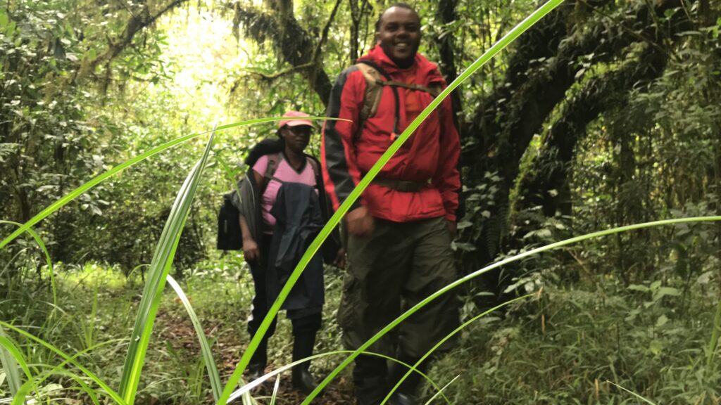 A detour on ascent will reward you with the Kamweti Fall as part of the Kathiba River. All through opportunities to just take in the forest atmosphere and literally bath in its beauty in awe.